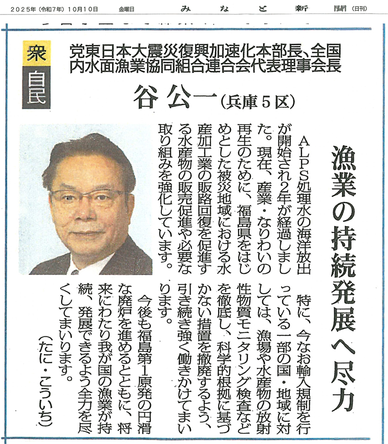 2025年11月26日のみなと新聞に記事が掲載されました。
